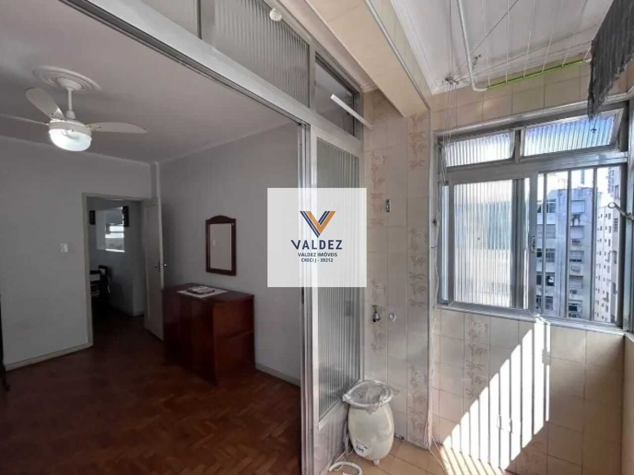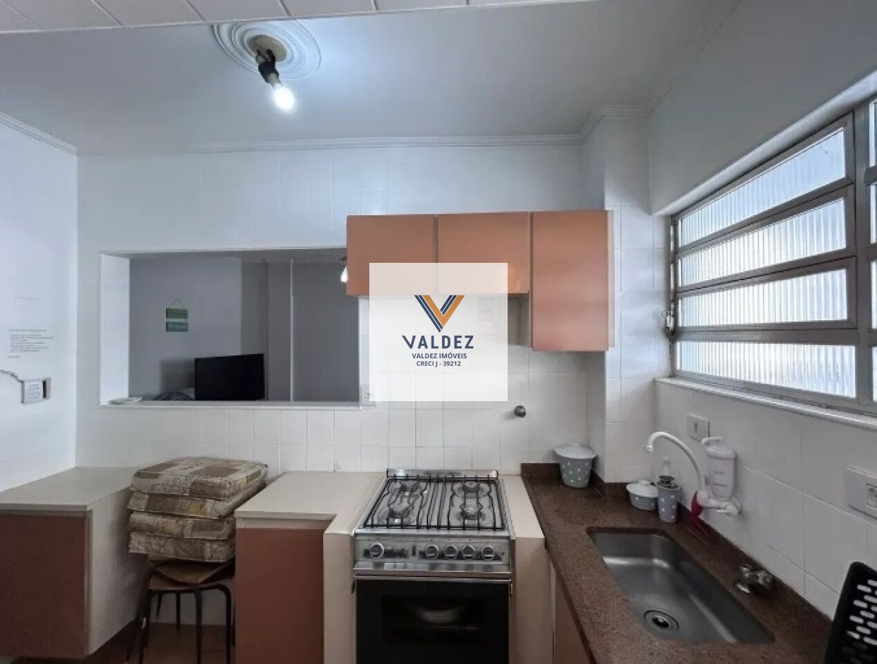 Venha morar na Ponta da Praia em apartamento de 2 dormitórios, 1 wc, 1 vaga, sala, cozinha.